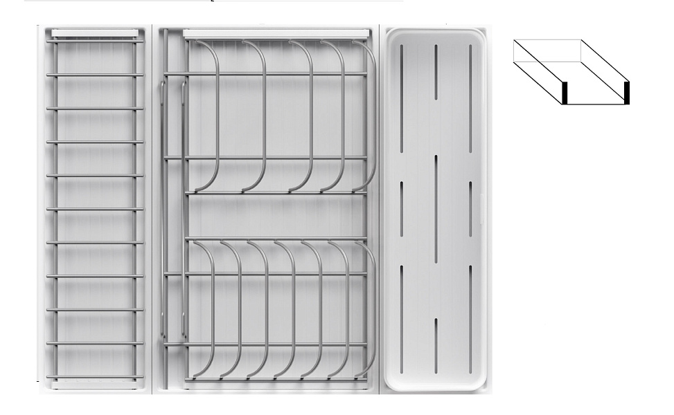 1 модуль для посуды большой (423 x 248 мм, состоит из 1 х держатель металлический, 1 х поддон пластиковый, 2 х защелка-ограничитель)