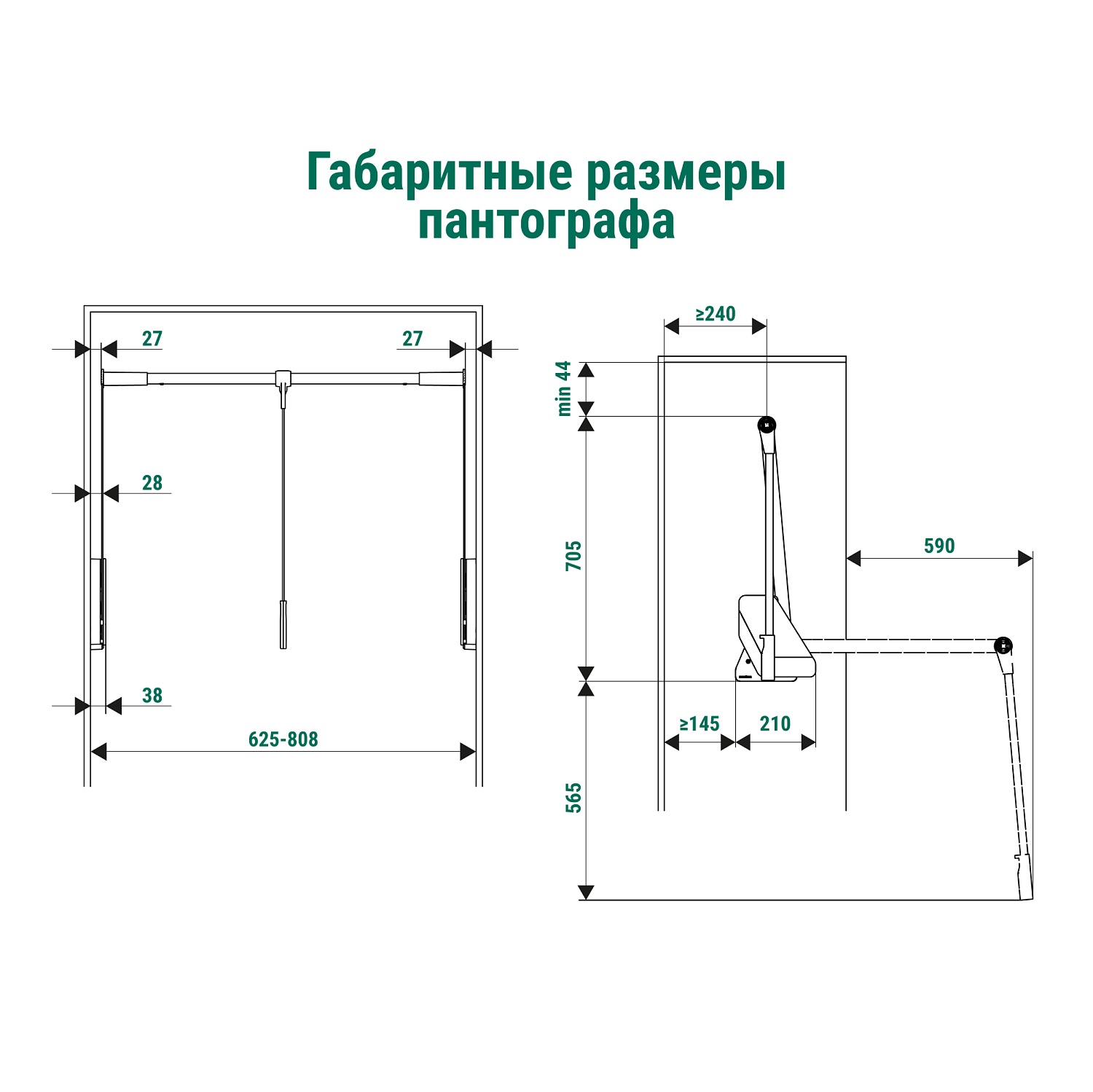 Пантограф для гардеробной стандартный Конеро W 625-808 мм нагрузка 0,5-12 кг цвет ЧЕРНЫЙ Kessebohmer | официальный магазин